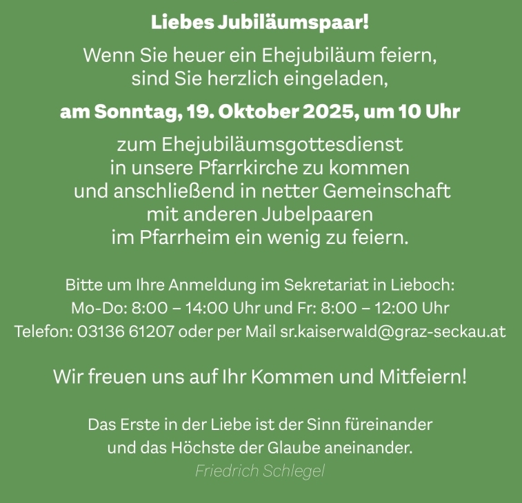 Herzliche Einladung zum Ehejubiläumssonntag am 19. Oktober 2025